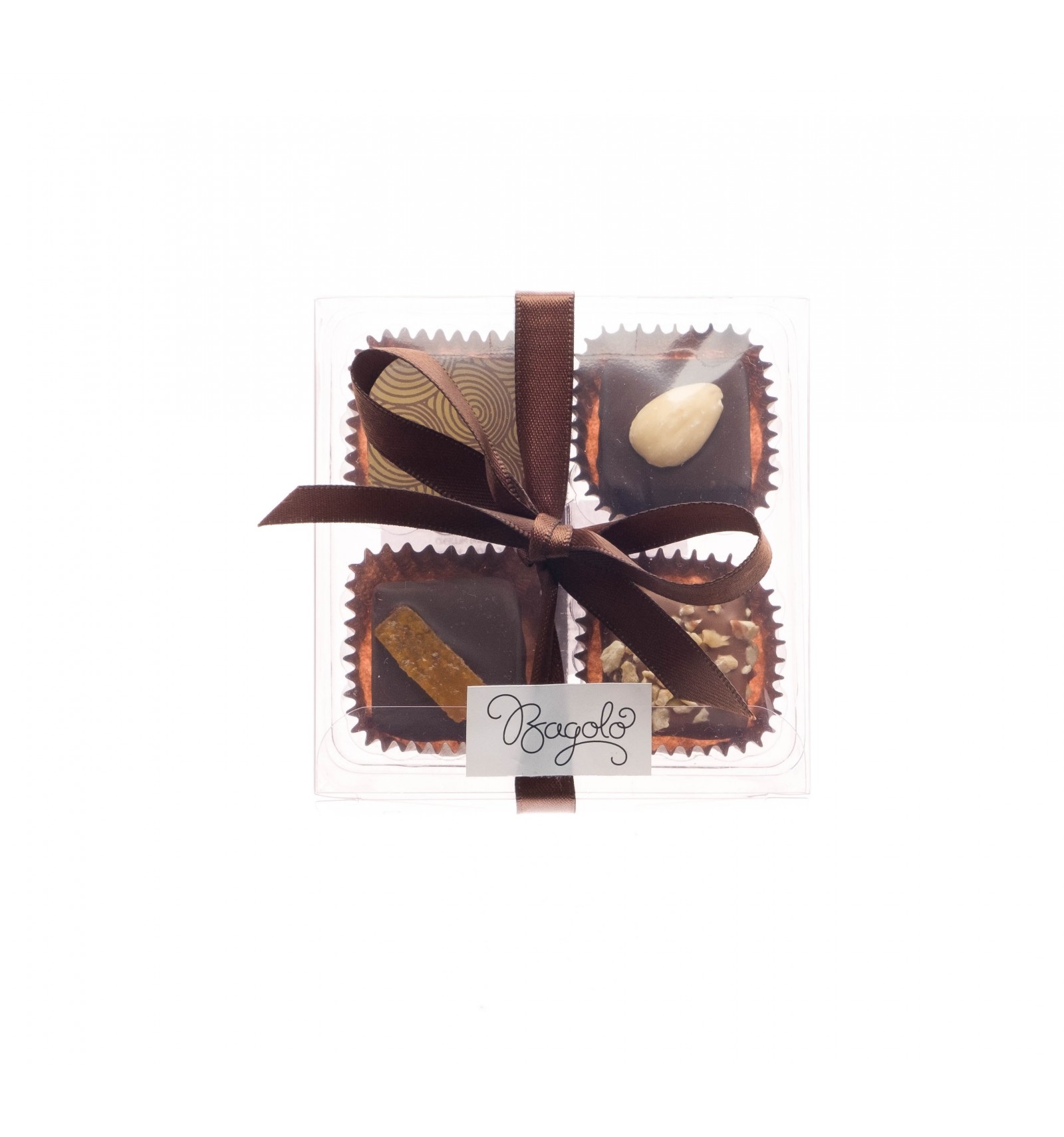 šećer, kakaov maslac, punomasno MLIJEKO u prahu, kakaova masa, LJEŠNJAK, BADEM, vafel (pšenično BRAŠNO, šećer, bezvodna MLIJEČNA mast, LAKTOZA, MLIJEČNE BJELANČEVINE, sol, ekstrakt slada JEČAM, tvar za rahljenje: natrijev hidrogen karbonat), kandirana naranča (šećer, naranča,