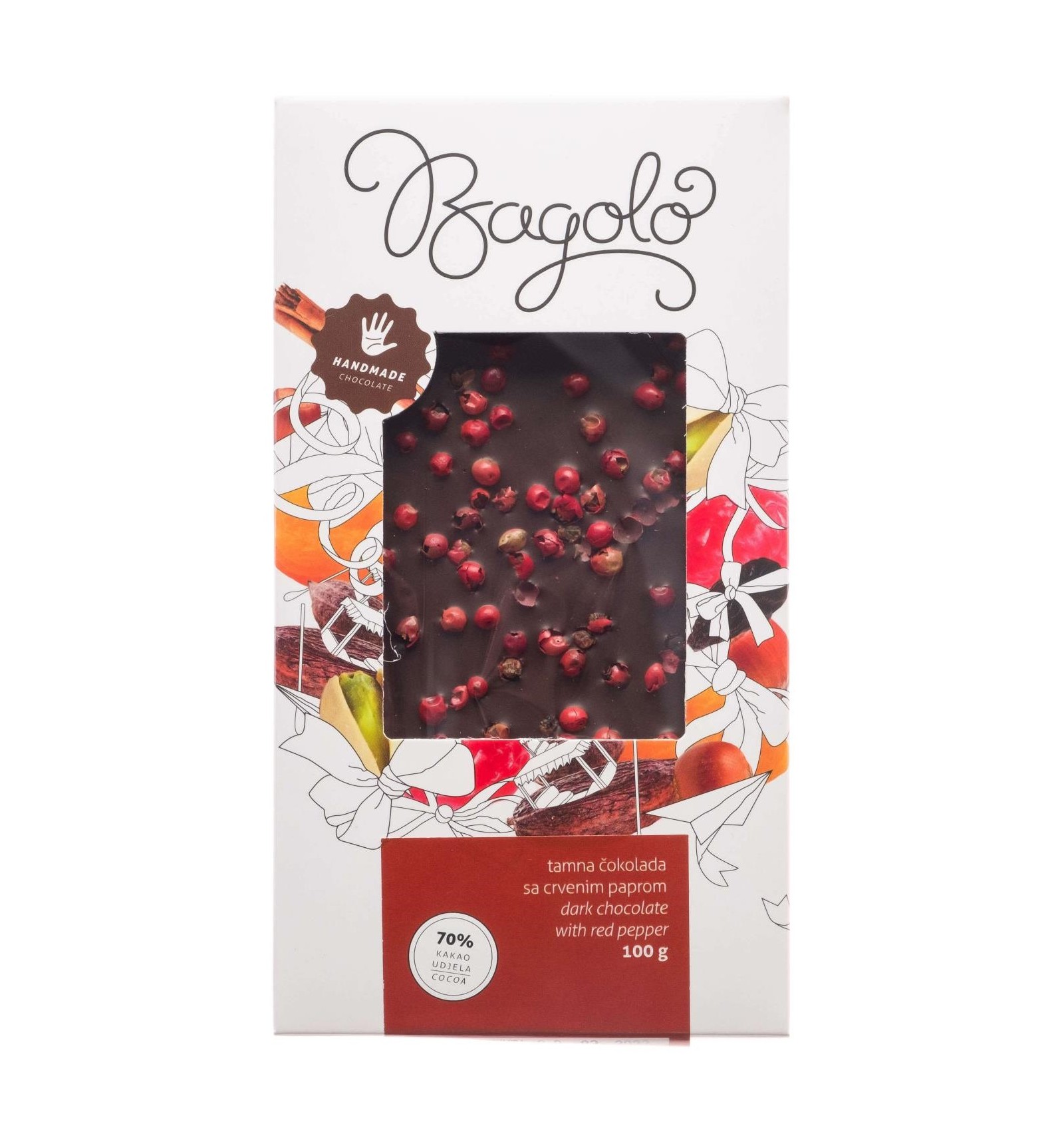 Sastojci: čokolada (kakaova masa, šećer, kakaov maslac, emulgator: SOJIN lecitin, prirodna aroma vanilije), crveni papar 3%. Čokolada sadrži: Kakaovi dijelovi: 70% min. može sadržavati tragove MLIJEKA i ORAŠASTOG VOĆA.