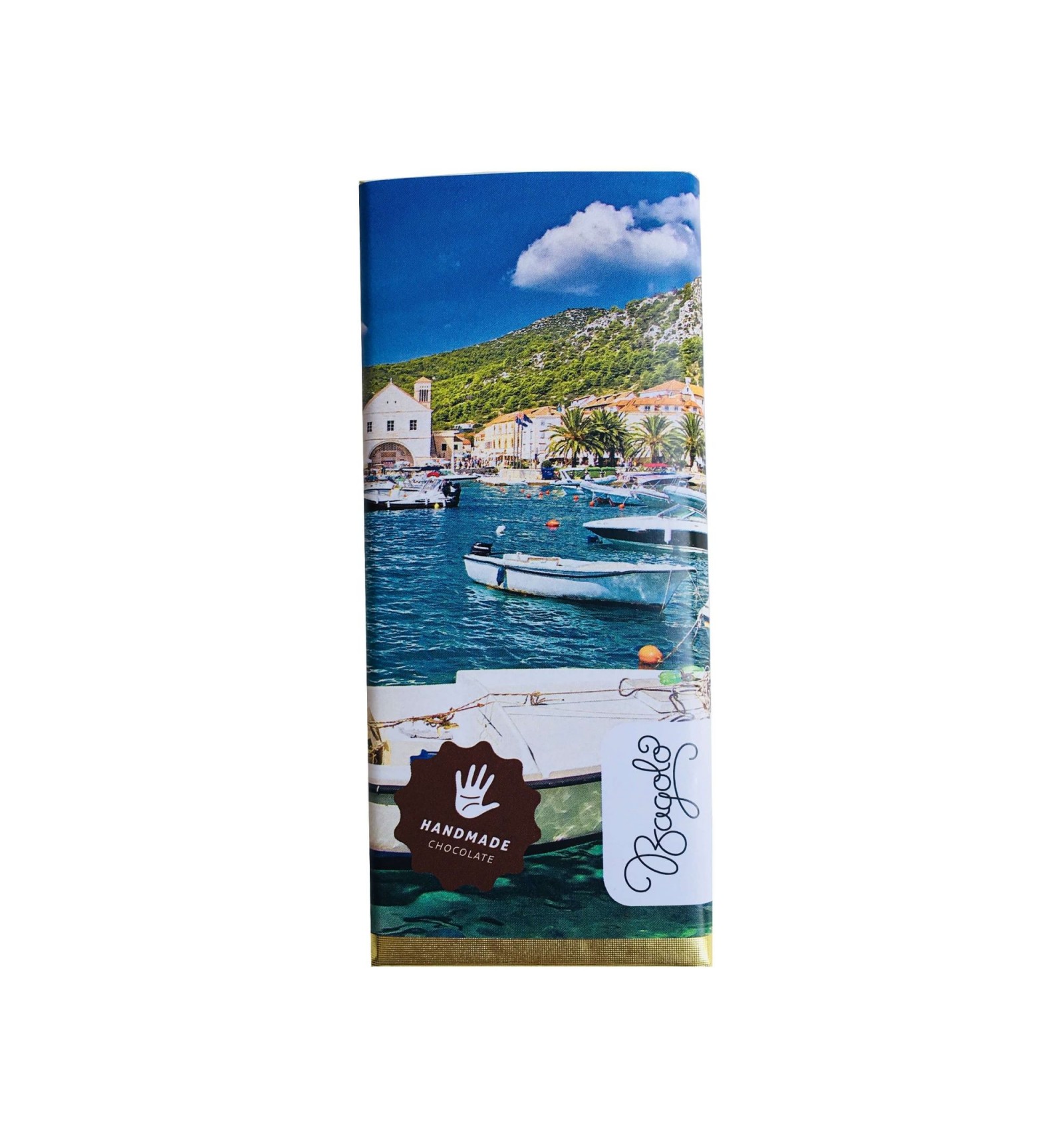 Ova čokoladica s motivom Hvara spaja arome cvjetova lavande i fine tamne čokolade s 55% kakaovog udjela.