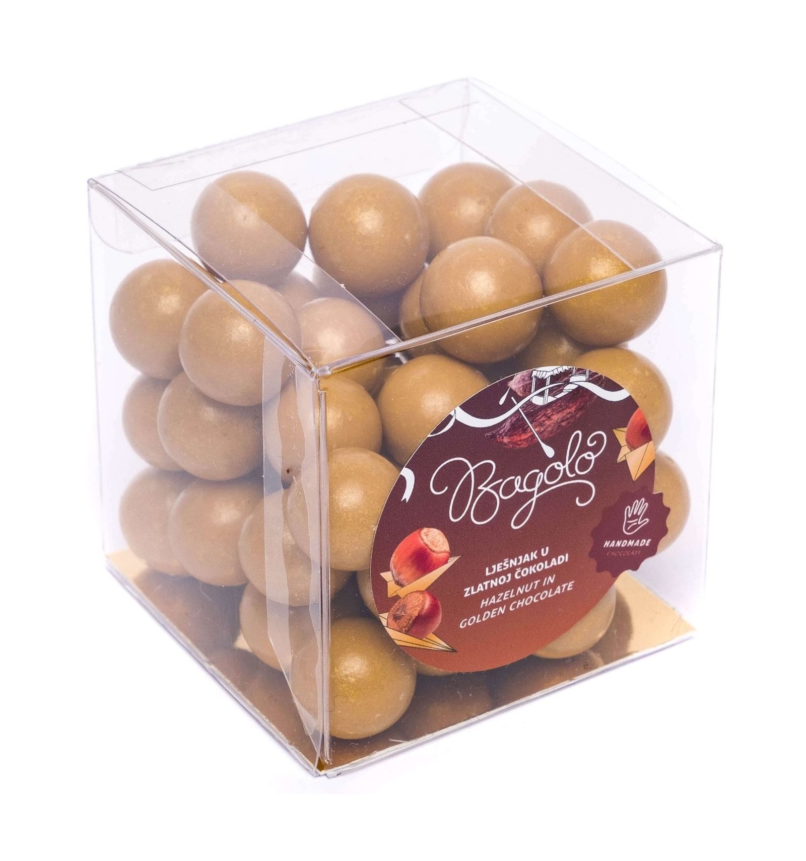 LJEŠNJACI 24% min, šećer, kakao maslac, obrano MLIJEKO u prahu, sirutka u prahu (MLIJEKO), MLIJEČNE masti, maslac (MLIJEKO), emulgator suncokretov lecitin, aroma prirodna vanilija. Sredstvo za glaziranje: arapska guma. Mogući tragovi drugog ORAŠASTOG VOĆA. Bijela čokolada sadrži min. 30% kakaovih dijelova i min. 24% suhe tvari mlijeka.