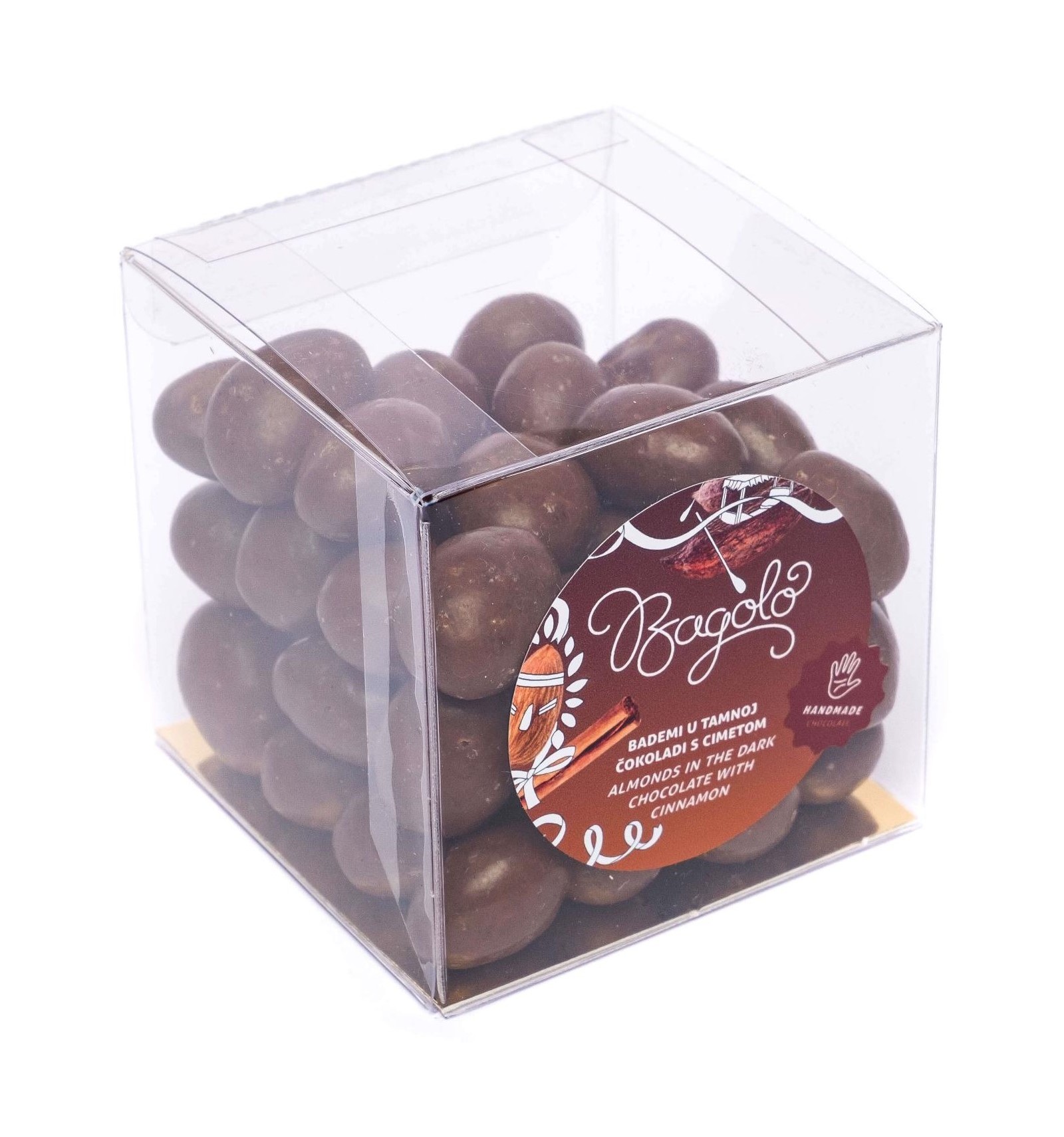 BADEM 24% min, šećer, kakao maslac, kakao masa, punomasno MLIJEKO u prahu, cimet 3%, emulgator SOJIN lecitin, prirodna vanilija. Sredstva za glaziranje: arapska guma. Može sadržavati tragove ostalog ORAŠASTOG VOĆA. Mliječna čokolada sadrži min 35% kakaovih dijelova i min. 21% suhe tvari mlijeka; tamna čokolada sadrži min. 55% kakaovih dijelova.