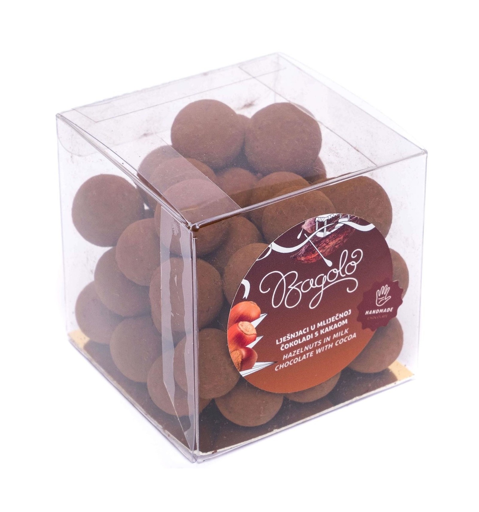 LJEŠNJAK (33%), šećer, kakaov maslac, punomasno MLIJEKO u prahu, kakaova masa, kakao u prahu, emulgator: SOJIN lecitin, prirodna aroma vanilije. PROIZVOD MOŽE SADRŽAVATI TRAGOVE DRUGOG ORAŠASTOG VOĆA. Mliječna čokolada sadrži: kakaovi dijelovi: 35% min, suha tvar mlijeka: 21% min.